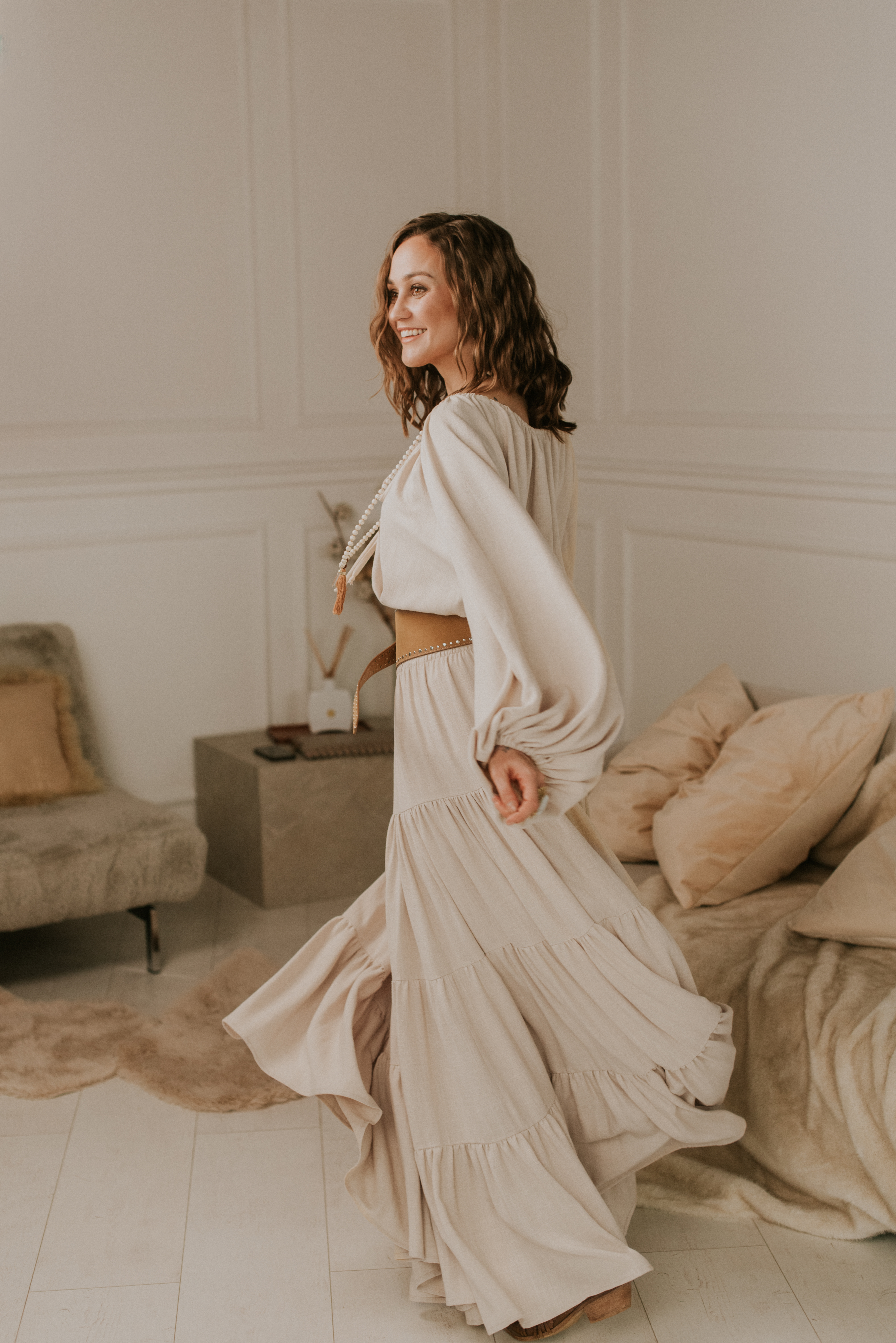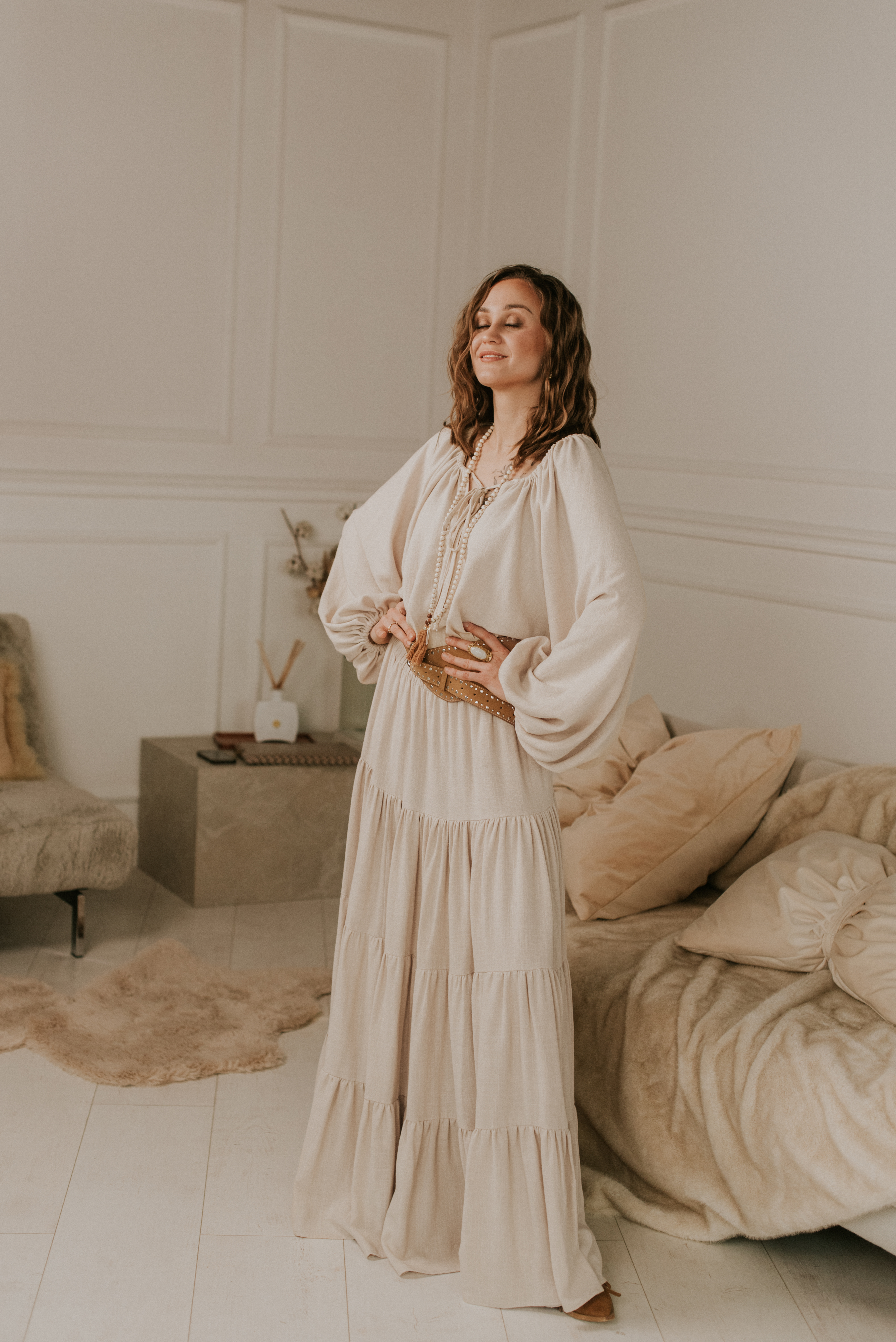 Uszyta z z przyjemnej mieszanki wiskozy i lnu w przepięknym kolorze vanilla.
