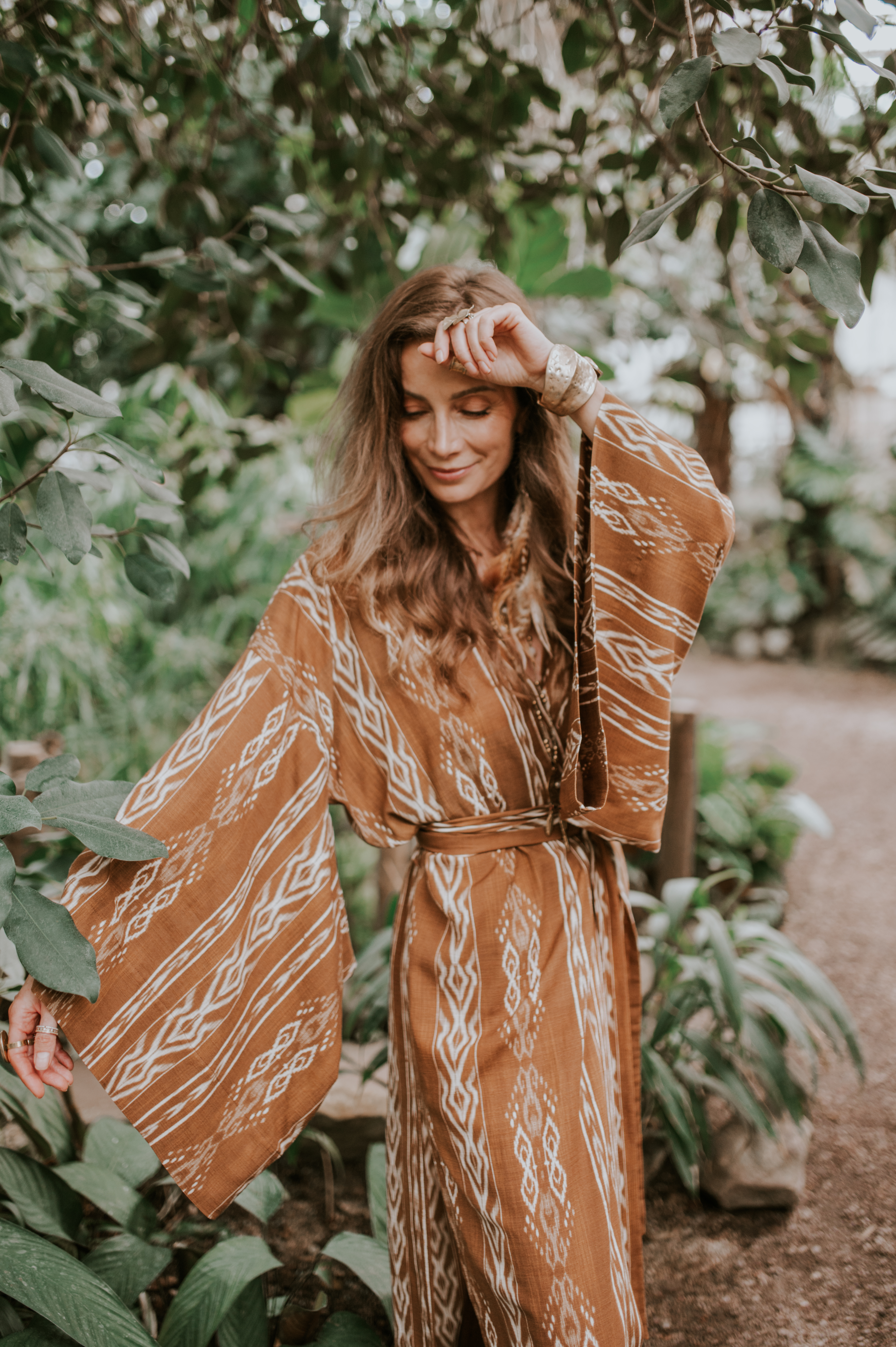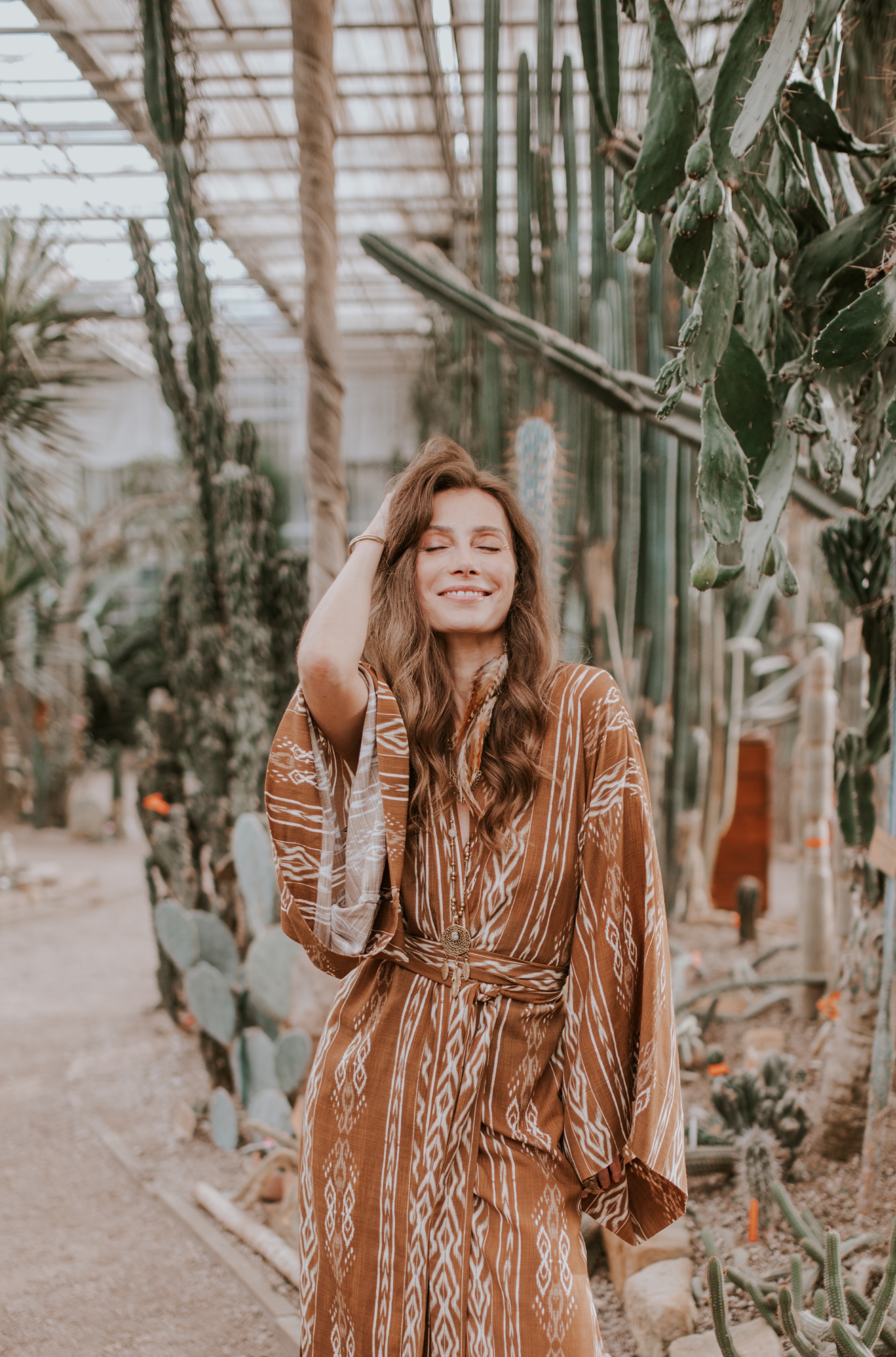 Tkanina wild harmony łączy naturalność z subtelną kobiecością. Jej lekkość i zwiewność sprawiają, że materiał niemal tańczy przy każdym kroku, tworząc wrażenie swobody i spokoju. Ciepły odcień brązu i organiczne wzory przywołują obraz natury, słońca i podróży. To tkanina, w której można poczuć się wolną, piękną i blisko własnej natury.